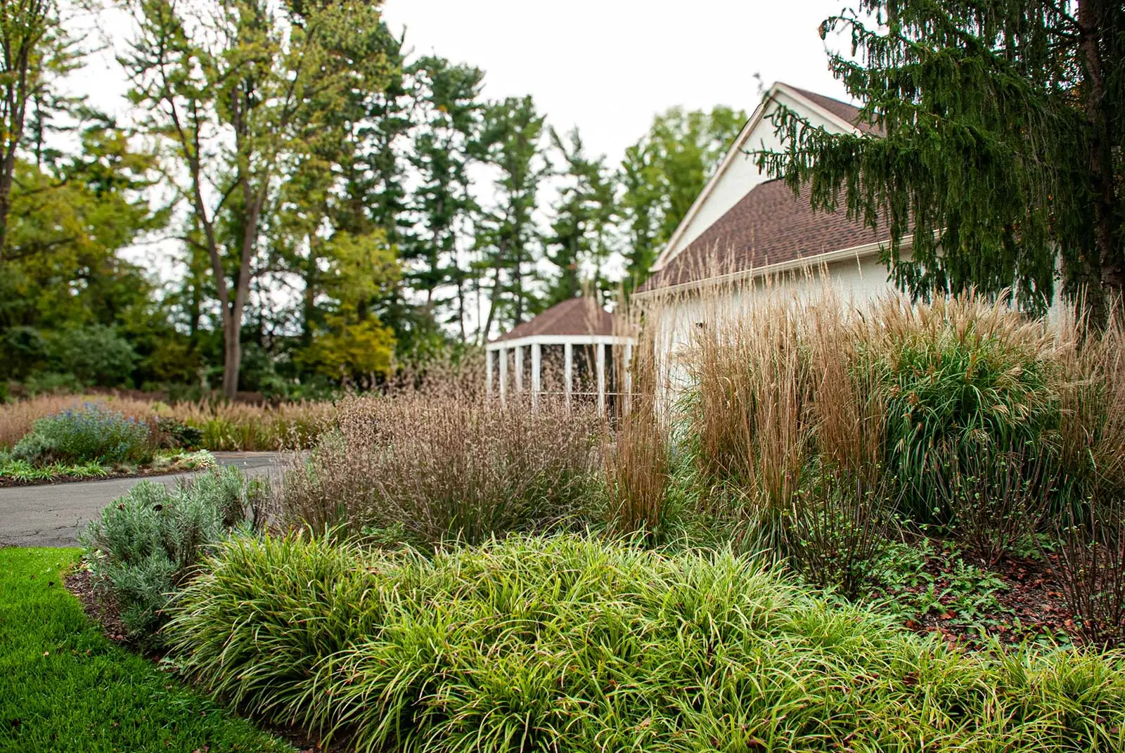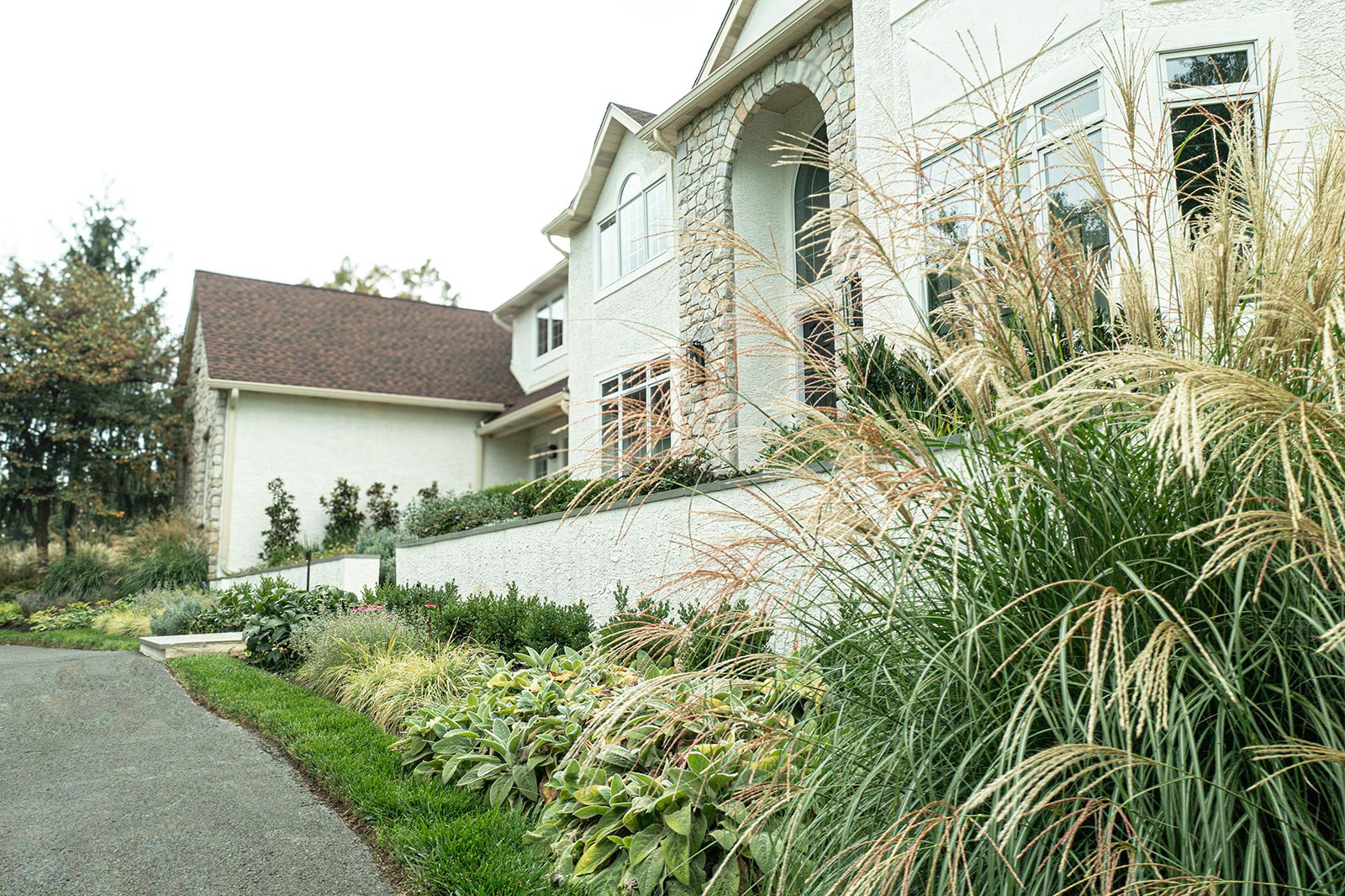Given the property’s proximity to a park with a high deer population, it was essential to select only deer-resistant plant species. The landscape was thoughtfully designed to provide year-round visual interest, ensuring that something is always in bloom throughout the seasons.